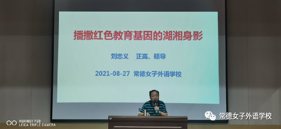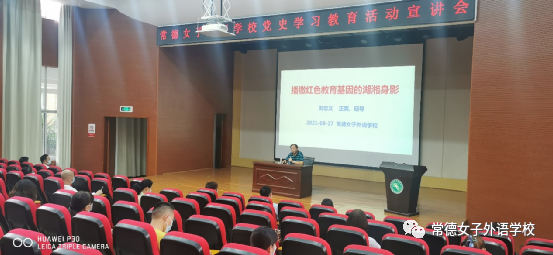 为深入学习贯彻习近平总书记在党史学习教育动员大会上的重要讲话精神,高标准高质量完成学习教育各项任务,并根据市委教育工委的安排,我校于2021年8月27日下午邀请了市委教育工委党史学习教育宣讲团成员、市教科院教育理论研究员刘忠义教授来我校向全体教职工进行了以《播撒红色教育基因的湖湘身影》为主题的党史学习教育专题宣讲活动。