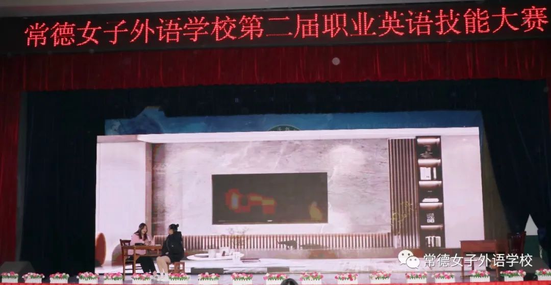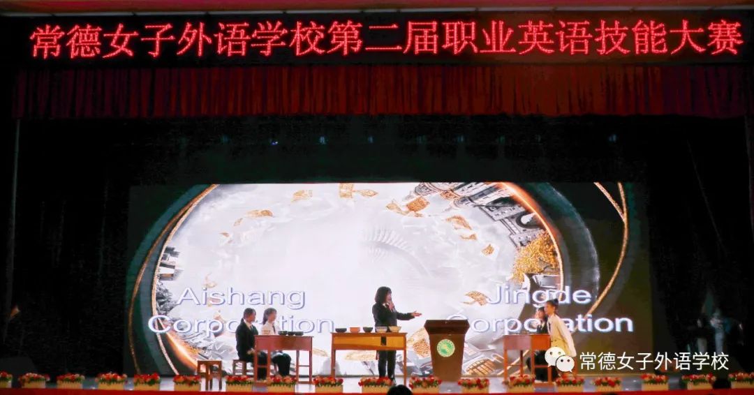 11月 25日晚,常德女子外语学校大礼堂人声鼎沸、灯火通明;舞台上更是华光四溢、色彩缤纷,令人期待已久的“常德女子外语学校第二届职业英语技能大赛”展演,也是最终的总决赛即将拉开帷幕。