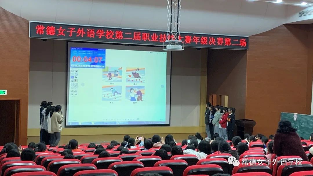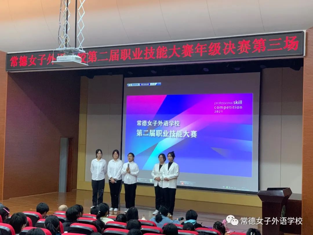 长期以来,常德女子外语学校在全面提升学生综合素质的基础上,突出职业技能的培养,学校商务英语专业教学水平处于省内领先地位,学校学生代表湖南省参加全国职业技能大赛职业英语赛项屡获大奖。近两年,学校落实《国家职业教育改革实施方案》,全面推进专业教学“岗课赛证”融通工作,将大赛成果转化为教学要素,从2020年开始,已将每年的11月定为技能大赛月。每年一度的校际技能大赛必将掀起学生学专业、比技能的学习高潮,真正达到以赛促学、以赛促教的目的。
