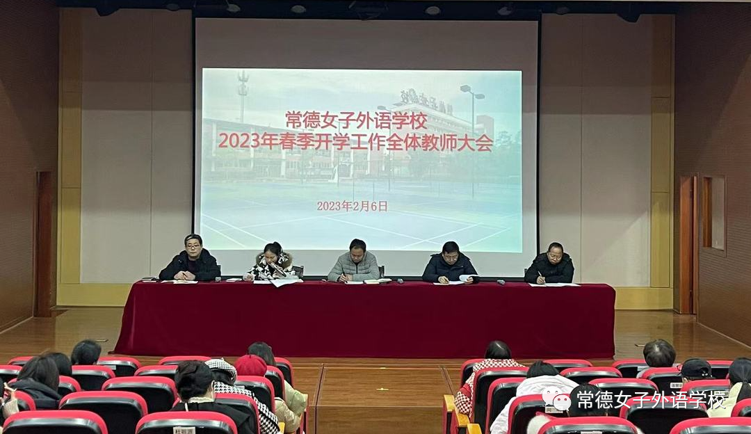 2月6日,常德女子外语学校2023年春季开学教师大会如期而至,这将是我们女外奋蹄前行、站得更高、看得更远、做得更好的一年。会中,学生处钟立红主任、教务处陈虚心主任、后勤处万贤春主任分别对学校各项工作做出了安排部署,王俊校长展望了当前学校在职业教育发展转型期面临的机遇和挑战,明确了“抓管理、促质量”的学校中心工作,寄语全体教师要充分尊重学生,全面提升教育教学服务质量,在新的一年里齐心协力共创辉煌。