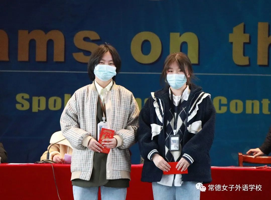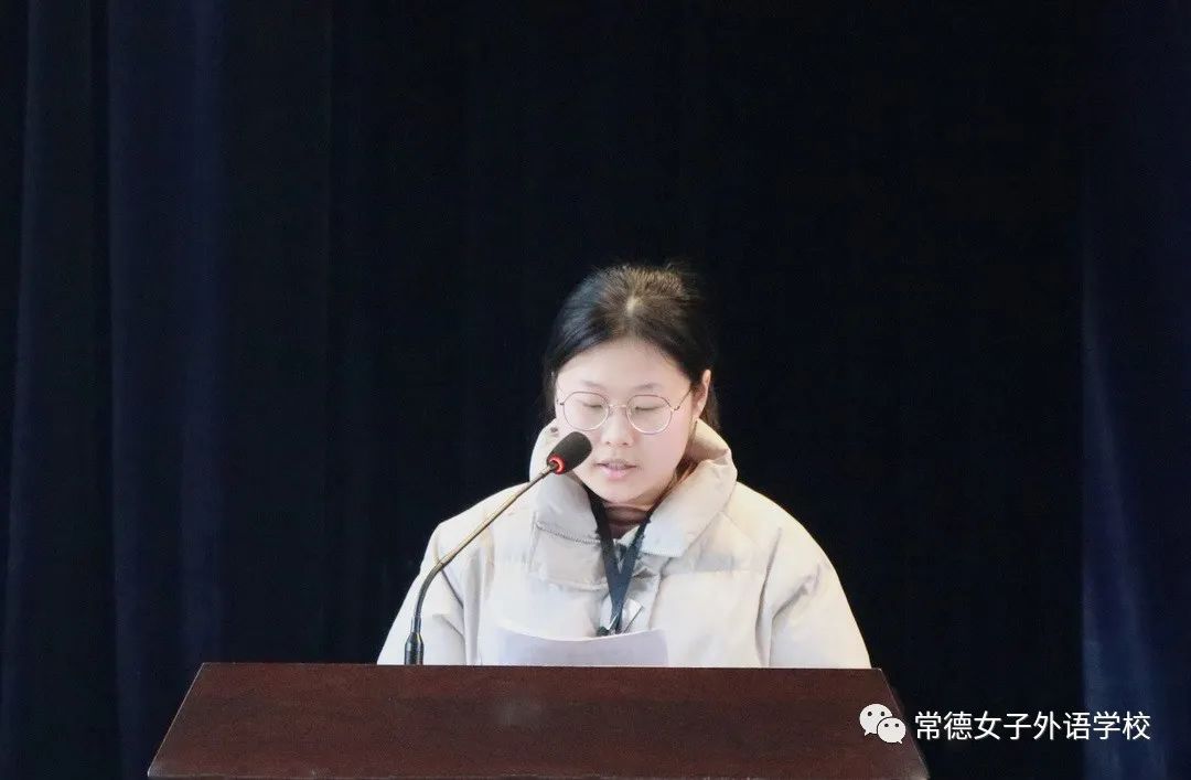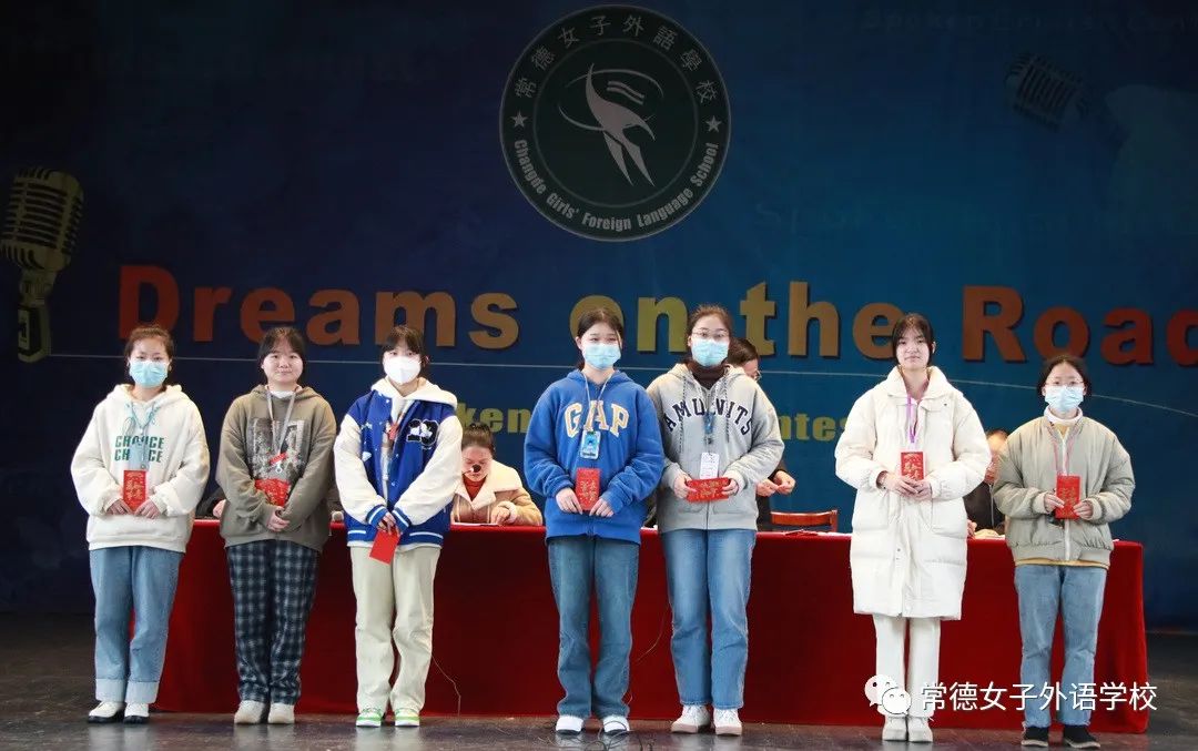 由聂怀波书记宣读常德女子外语学校《关于表彰2022年下学期先进班级、优秀学生干部、三好学生、学习标兵等的决定》,钟立红主任宣读表彰名单,由王俊校长、陈虚心主任、万贤春主任给获奖的班级、同学颁发奖状和奖金。